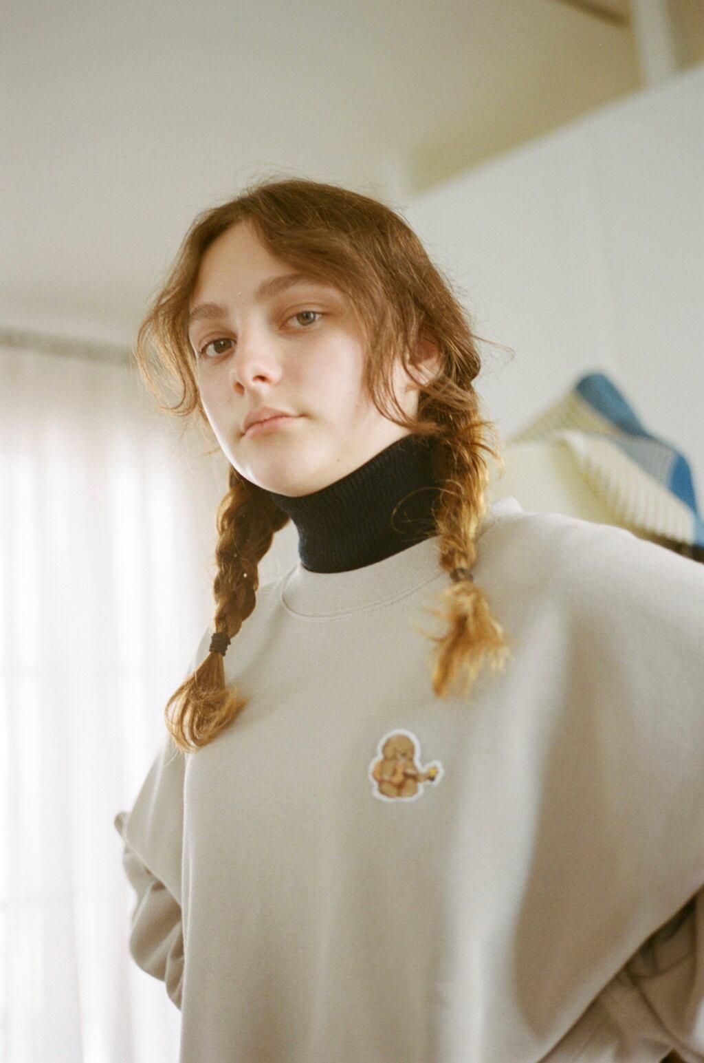 ギターを持ったムックのワンポイントスウェット。ゆったりとしたシルエットで着丈を少し短めに設定している事でボトムスとのバランスが良い1枚。裏地は裏起毛になっているので肌触りも良く温かく着れ、秋冬に使い勝手の良いスウェットになっております。